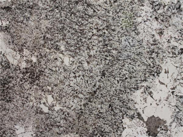 Antique White a des cristaux noirs et gris de cette pierre qui sont si finement répartis et selon un tel motif qu'ils semblent avoir été placés à la main par un bijoutier.